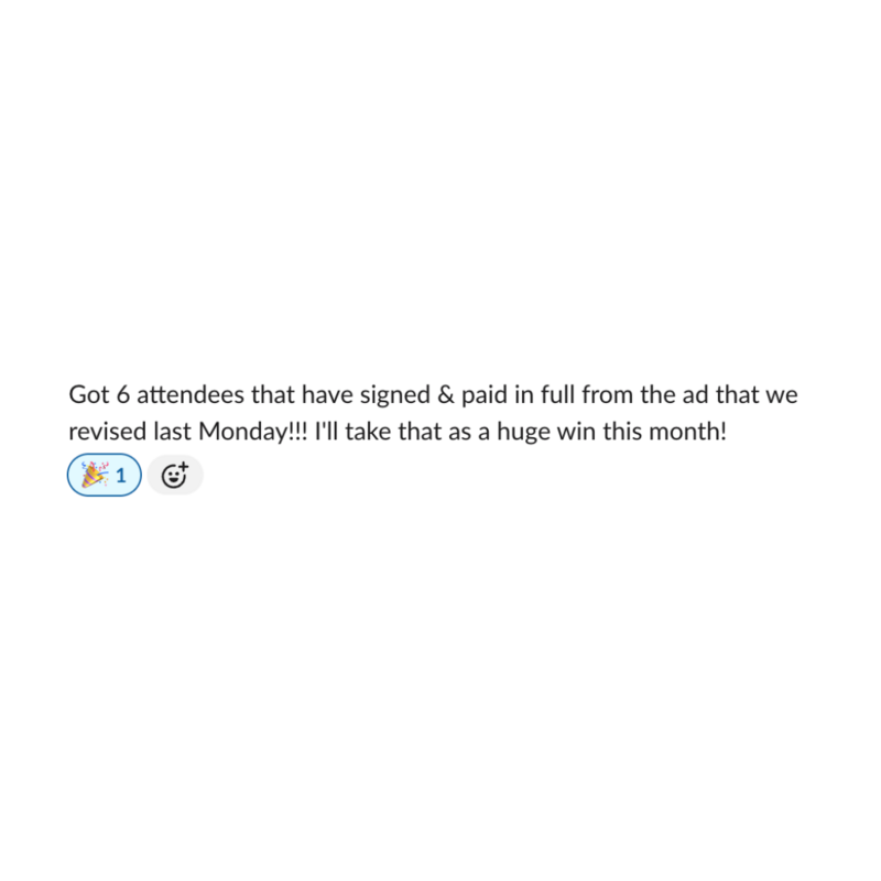 After completing the Sales Copy Bootcamp, I’ll personally work with you 1:1 to audit your full sales page copy. The goal of your sales page is to have a high performing page that converts leads into bookings. This is a key component of your launch success.