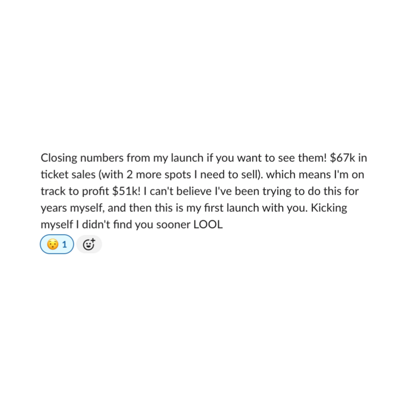 And that was just the beginning. When I launched my latest retreat, I broke $100K in ticket sales.